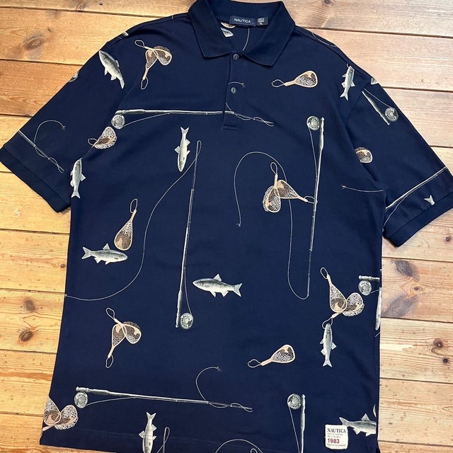 "良デザイン" NAUTICA 総柄S/S ポロシャツ