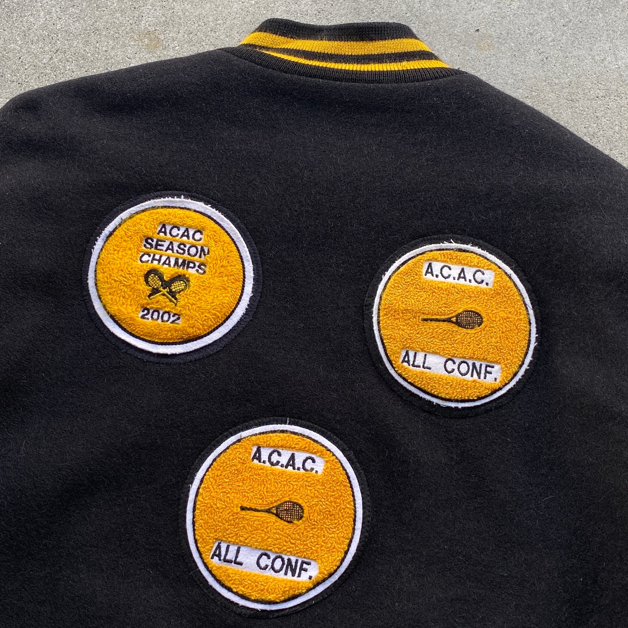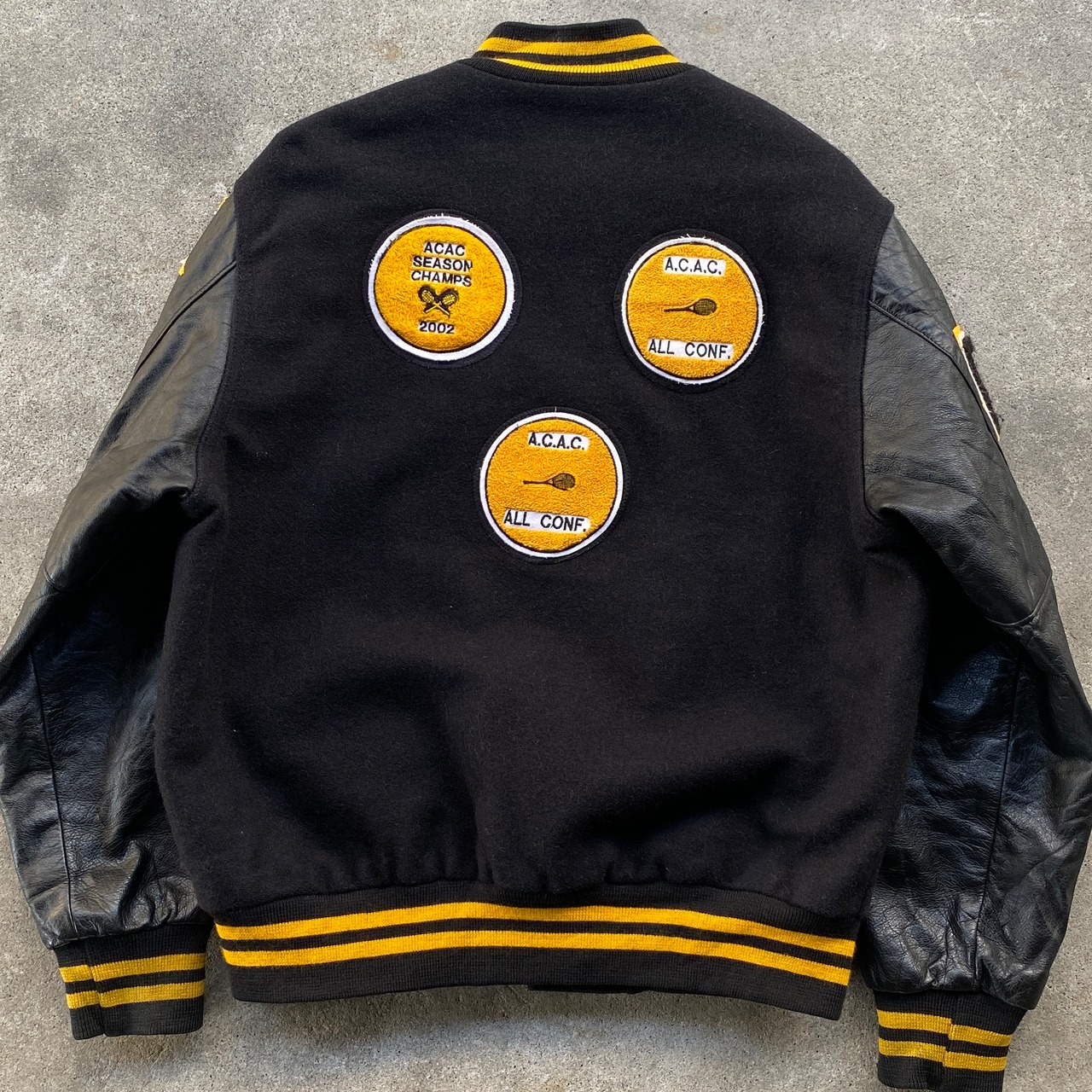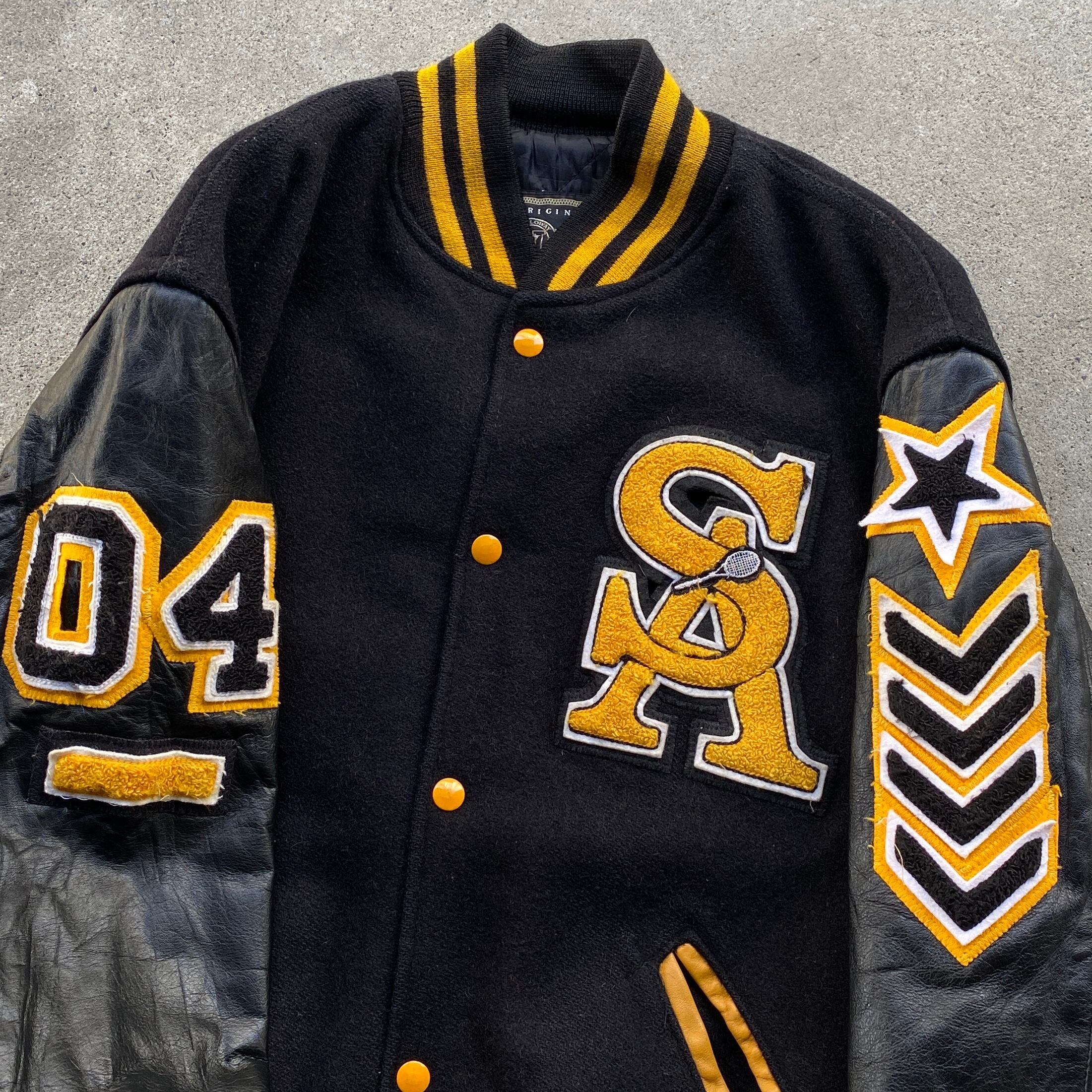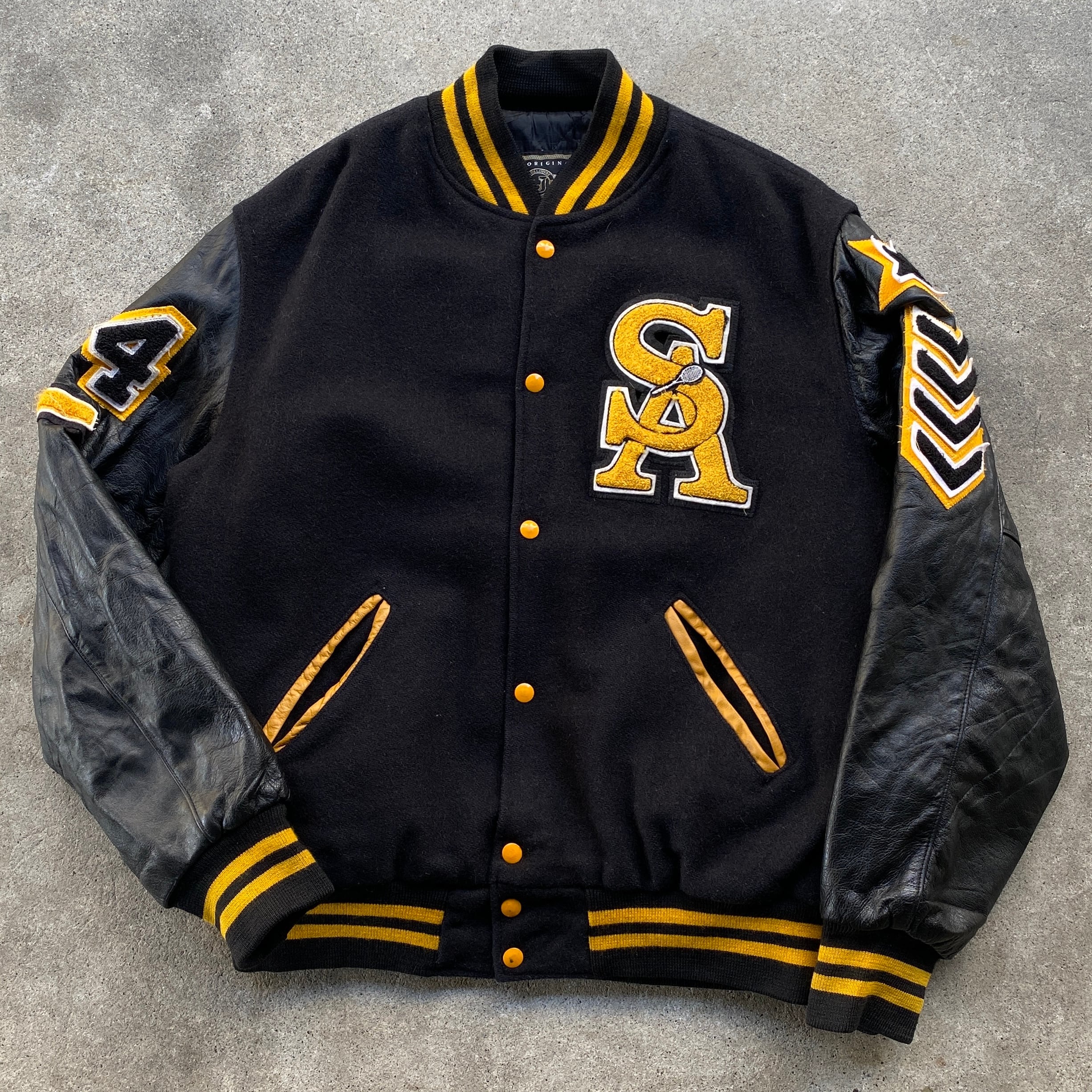 両袖レザー仕立てに豪華なレタードワッペン!