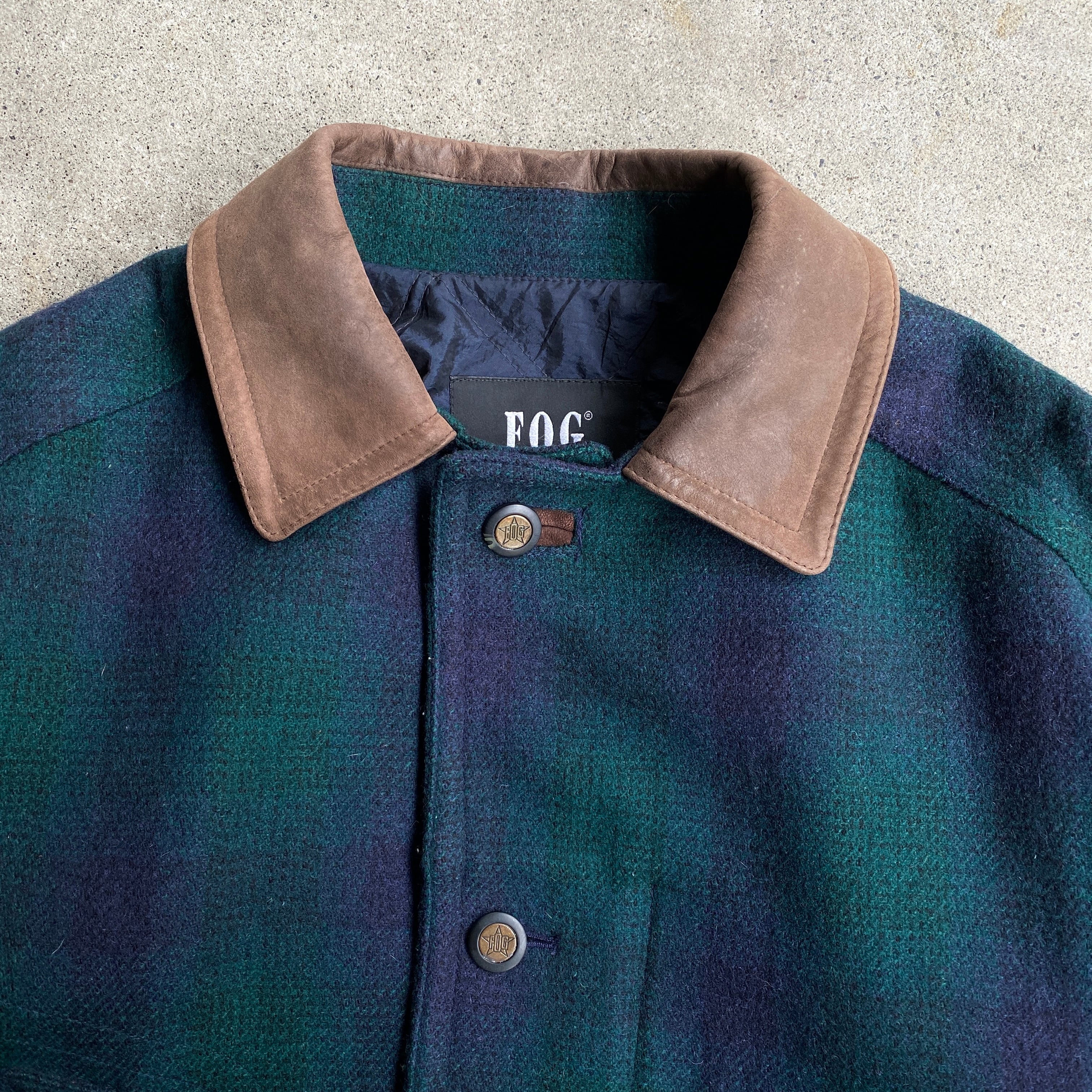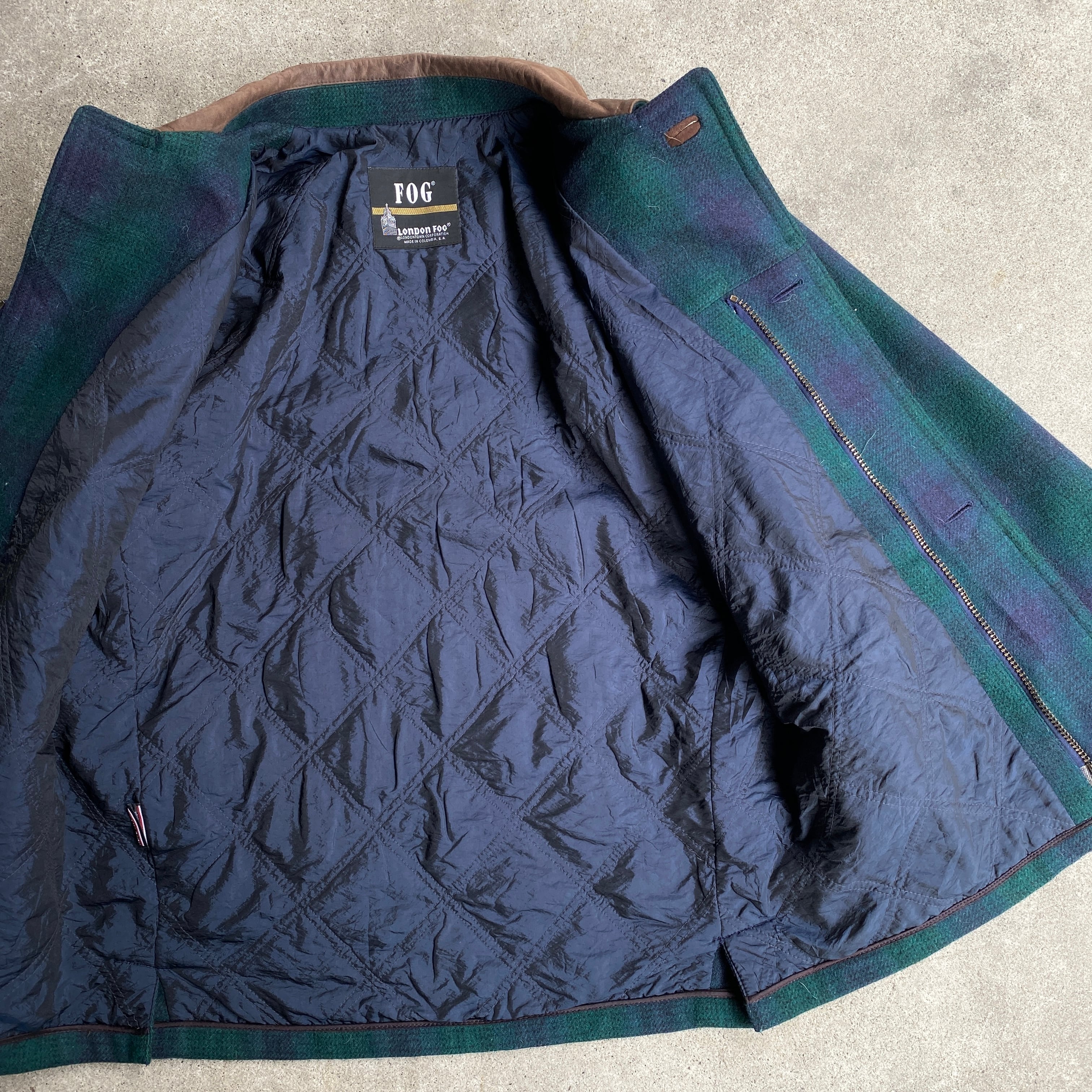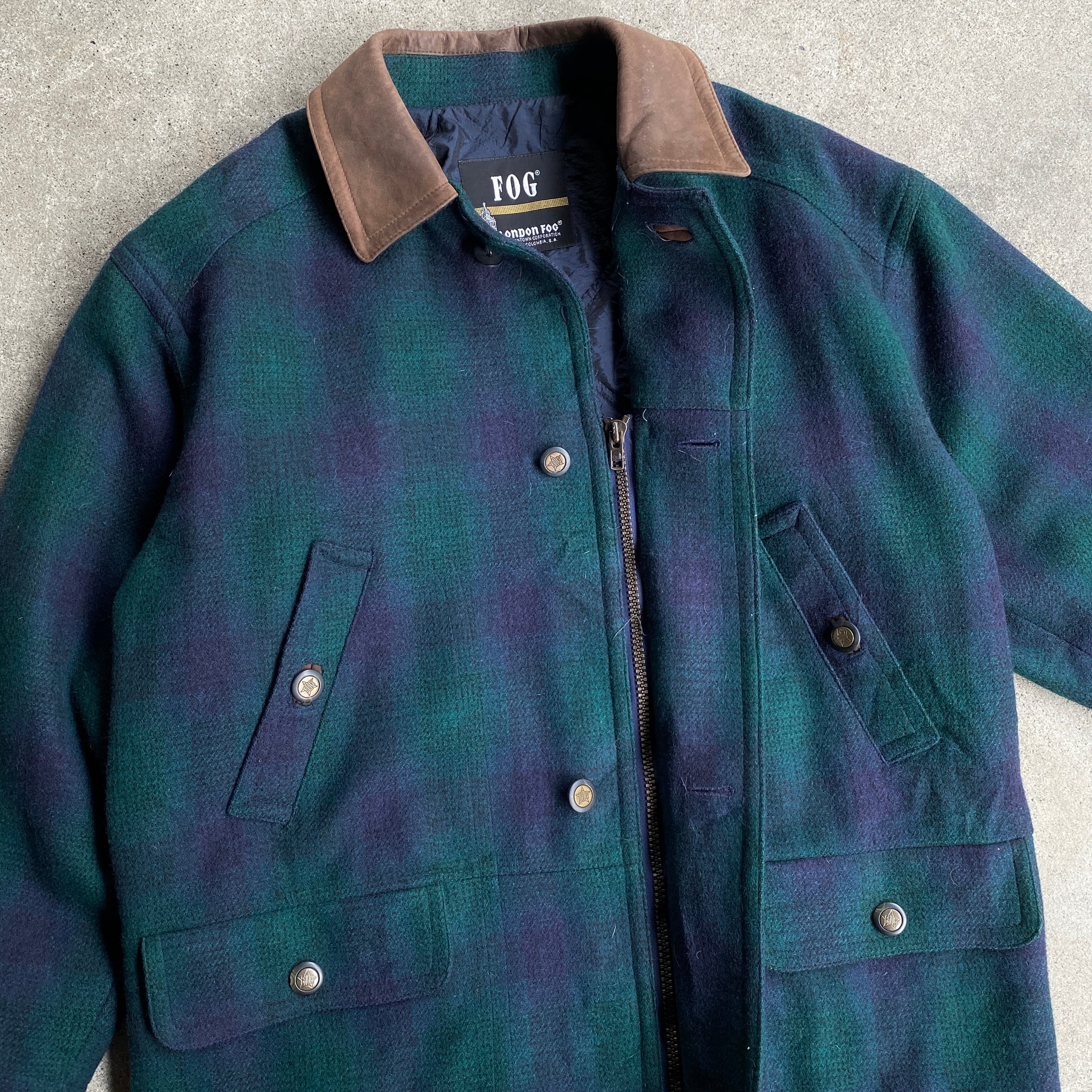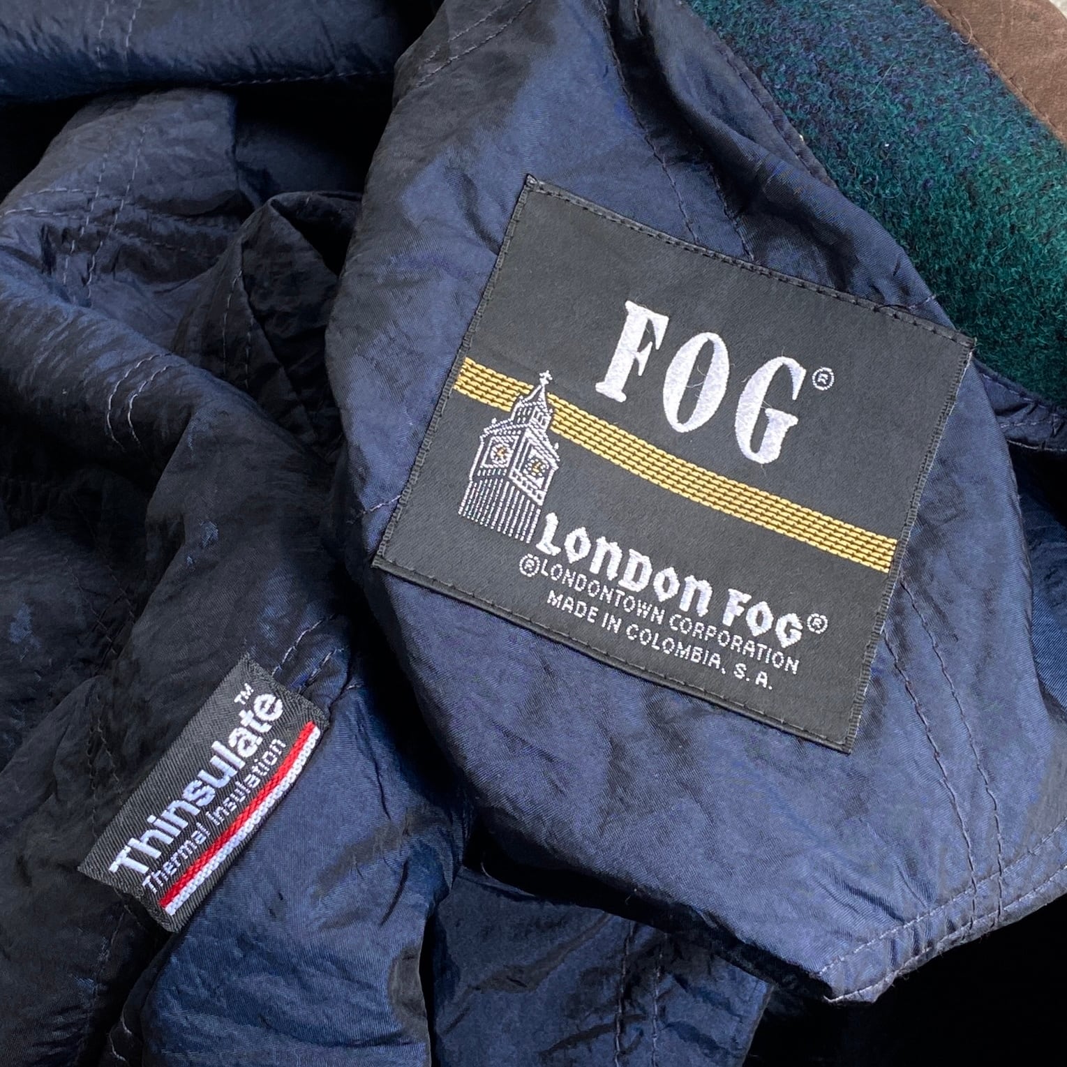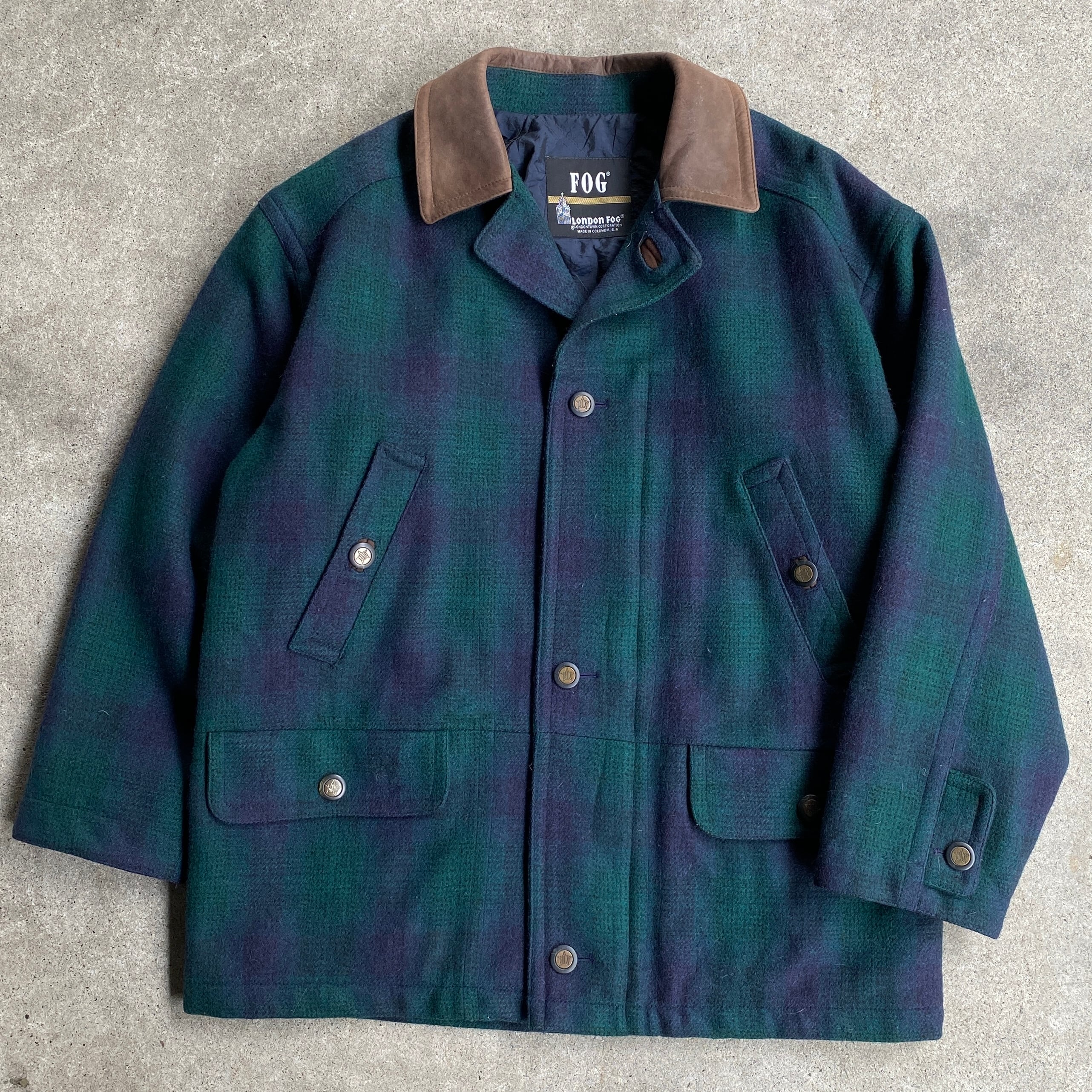 "オンブレチェック" 90's LONDON FOG 襟レザー ウールハンティングジャケット