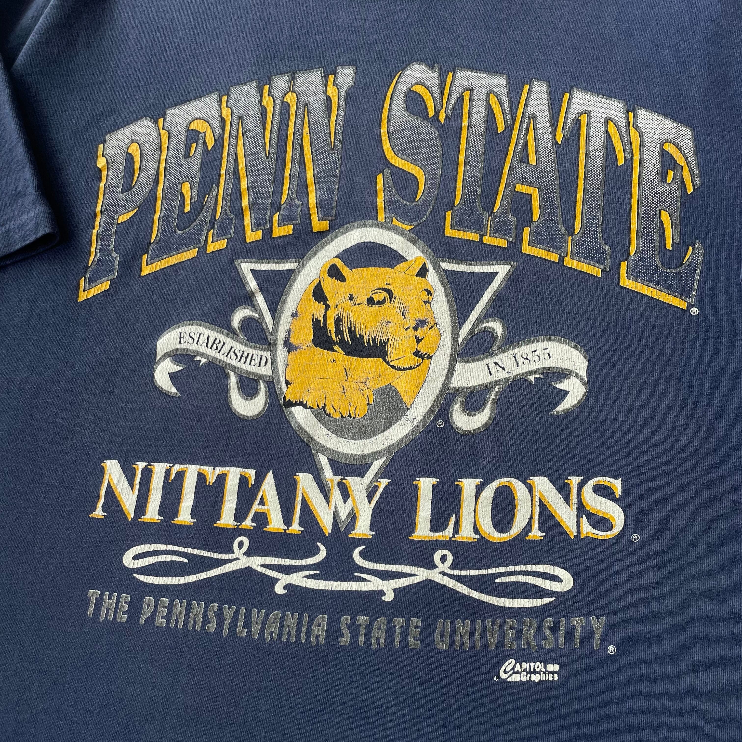 フェードしたネイビーボディに、クラシックなカレッジプリント!