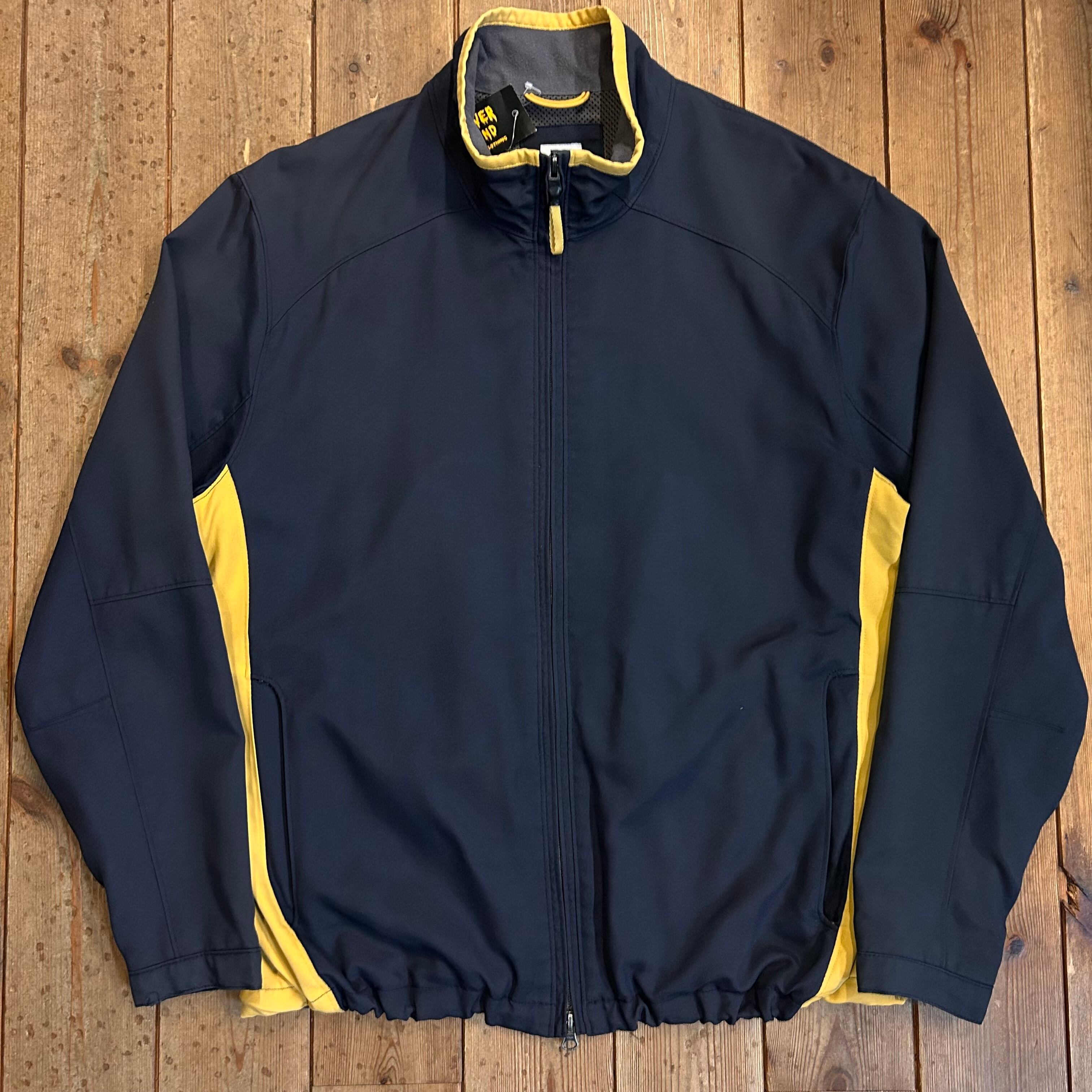 ダブルジップやスリーブのポケット、ドローコードなどがあり少しテックな雰囲気◎