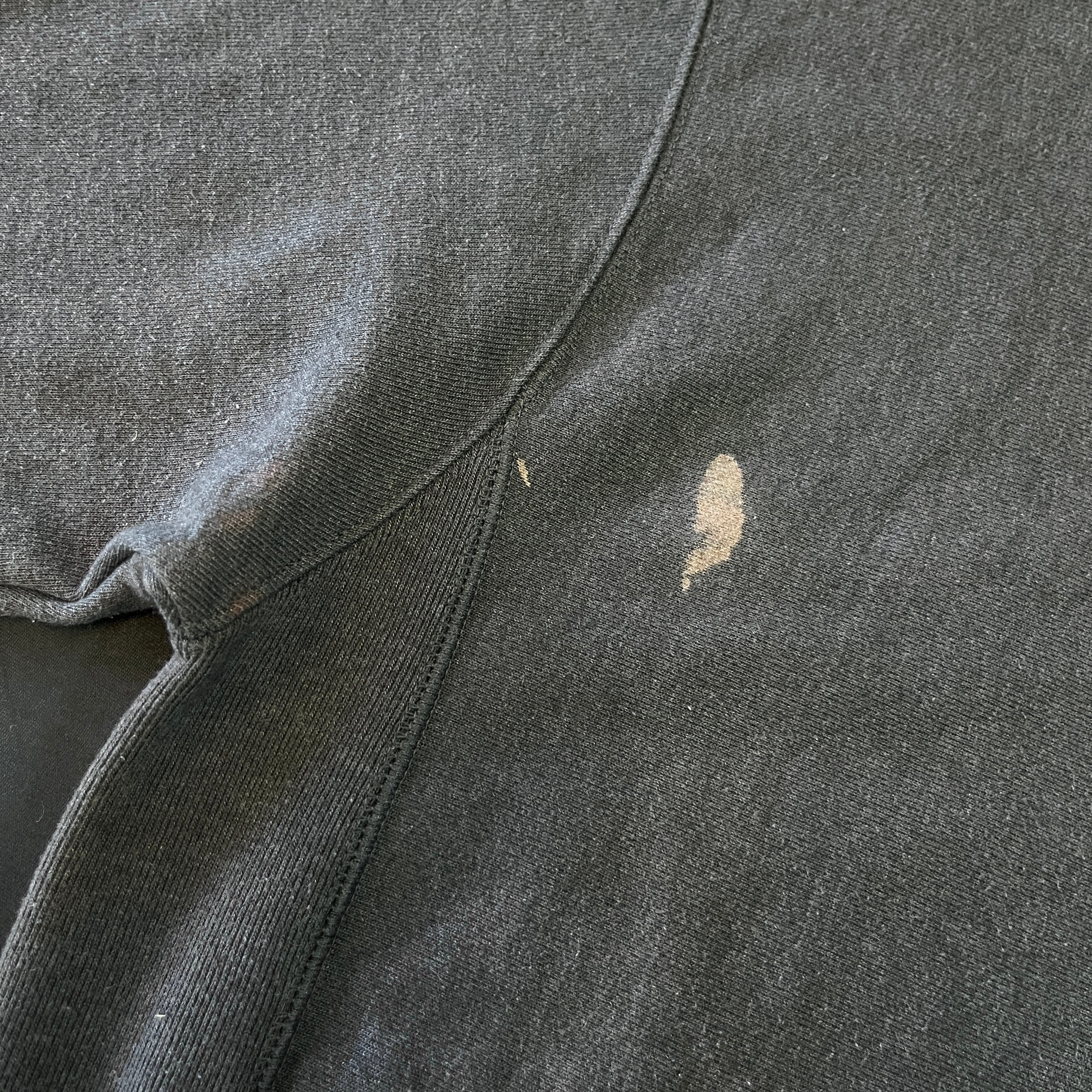 右の裾と腹近くにブリーチ飛びが見られます。その他若干の使用感はありますが着用に問題のあるダメージ、汚れはございません。