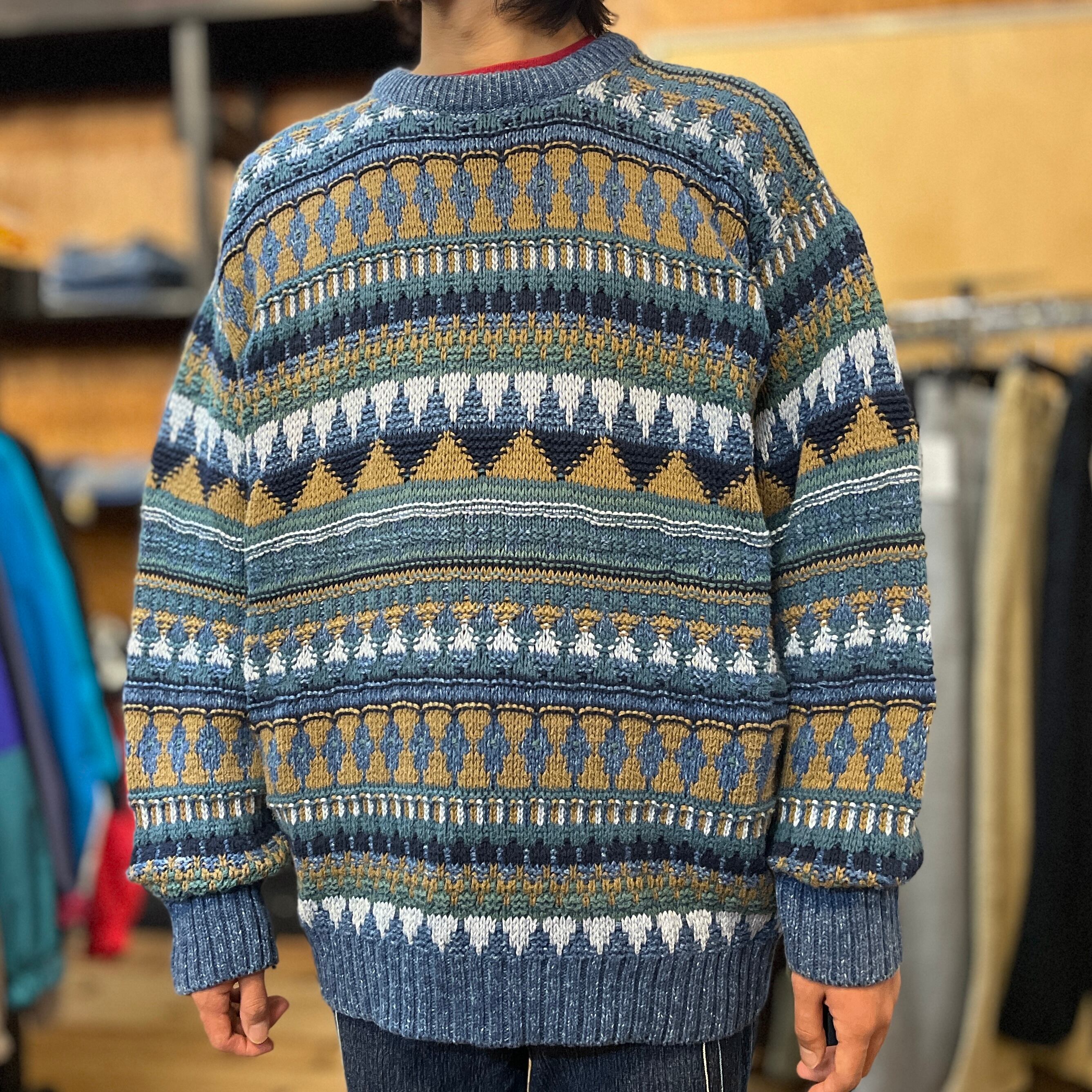 80's~90's USA製 Eddie Bauer フェアアイル コットンニットセーター